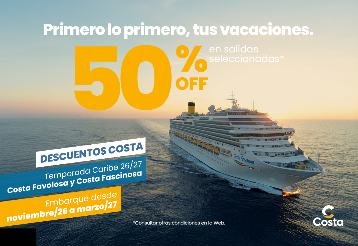 50% OFF en salidas seleccionadas en nuestros programas del Caribe y Sudamérica.